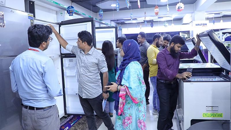 রাজধানীসহ দেশের বিভিন্ন অঞ্চলের ওয়ালটন প্লাজা ও পরিবেশক শোরুমে ক্রেতাদের উপস্থিতি বেড়েছে উল্লেখযোগ্যভাবে। ঢাকার পাশাপাশি চট্টগ্রাম, রাজশাহী, খুলনা, রংপুর, সিলেট, ফেনী, নরসিংদী, বগুড়া ও অন্যান্য জেলা শহরের শোরুমগুলোতেও একই চিত্র দেখা যাচ্ছে বলে বিক্রয়-সংশ্লিষ্টরা জানিয়েছেন। তাদের ভাষ্য মতে, ক্রেতারা এখন শুধু “একটি ফ্রিজ” কিনতে চান না; তারা বিদ্যুৎ সাশ্রয়ী, নির্ভরযোগ্য, নান্দনিক ডিজাইনের এবং প্রযুক্তিসম্পন্ন এমন একটি পণ্য খুঁজছেন, যা দীর্ঘমেয়াদে ব্যবহারযোগ্য এবং বিক্রয়োত্তর সেবাও নিশ্চিন্ত রাখবে। এই চাহিদার জায়গাতেই ওয়ালটন নিজেদের শক্ত অবস্থান তৈরি করেছে।